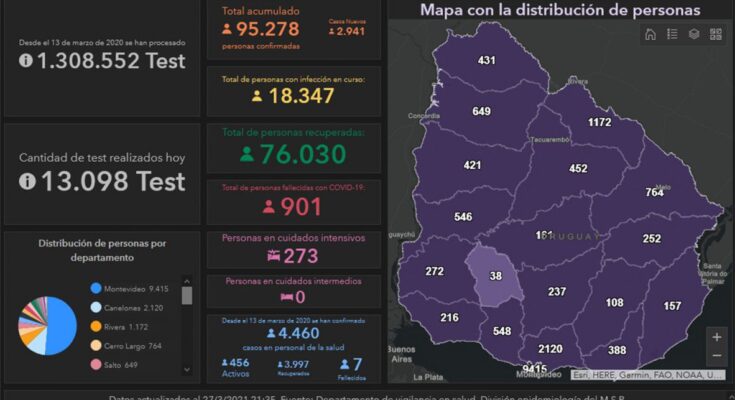 El informe del Ministerio de Salud Pública (MSP) de este sábado da cuenta de 13.098 test de Covid-19 procesados y 2.044 casos nuevos. Además se registraron 26 fallecimientos de pacientes con diagnóstico de coronavirus y hay 18.347 personas cursando la enfermedad. La cantidad de personas en cuidados intensivos subió a 273, al borde del “nivel rojo”, según advierte la sociedad de intensivistas.