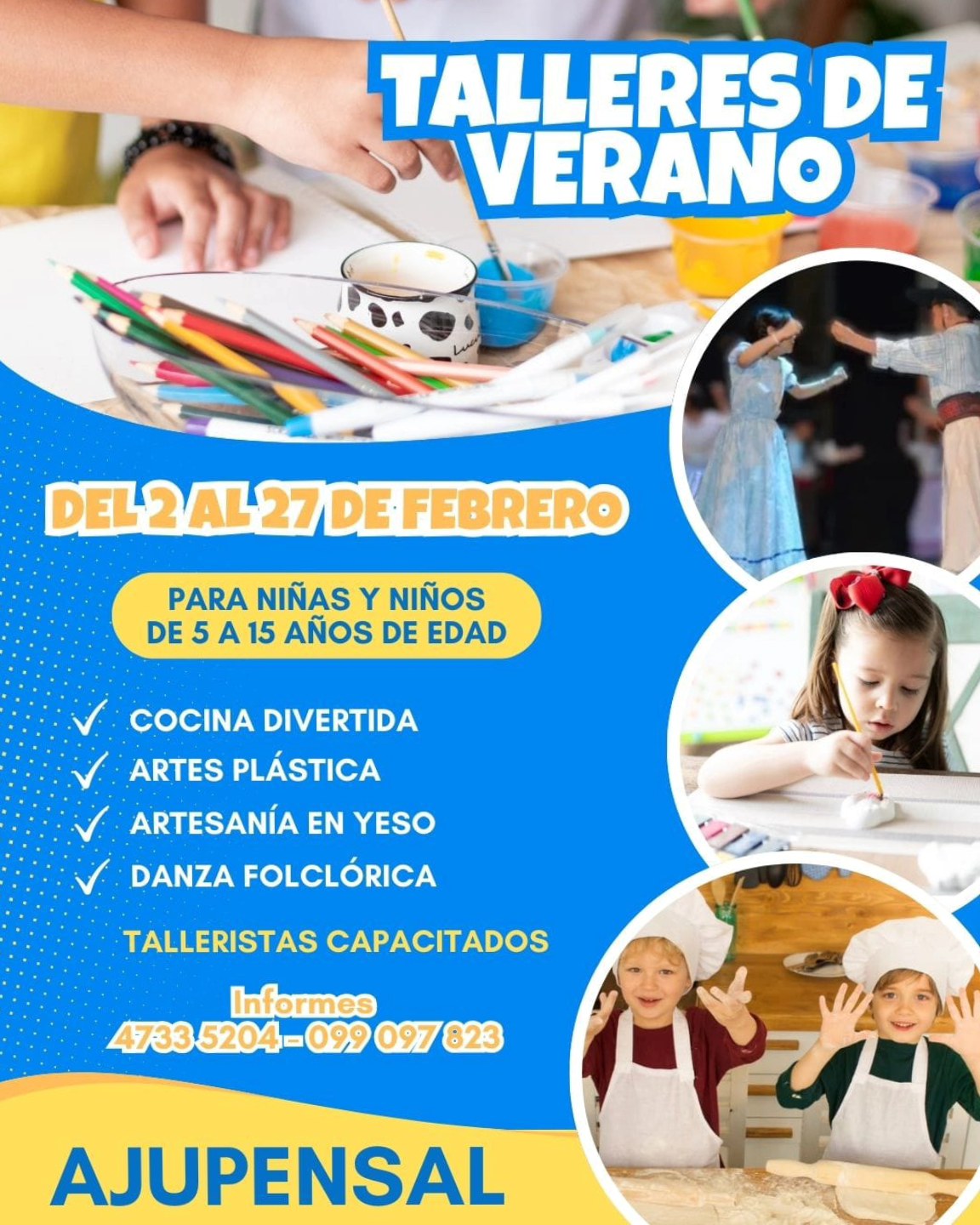 A.JU.PEN.SAL. comunica que se encuentran abiertas las inscripciones para los Talleres para Niños, que se desarrollarán durante el mes de febrero: