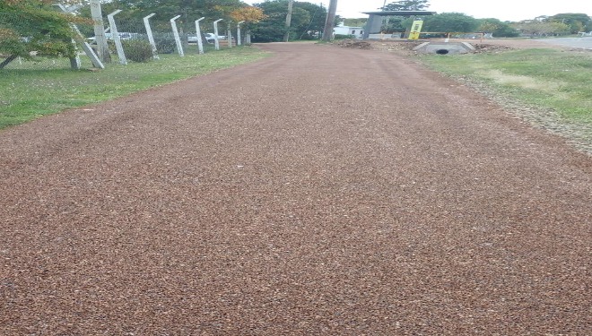 La empresa Paganini SRL, ganadora de la licitación y funcionarios del departamento de Obras de la Intendencia de Salto, trabajan en la construcción de la nueva ciclovía paralela al camino de acceso a la localidad de San Antonio.