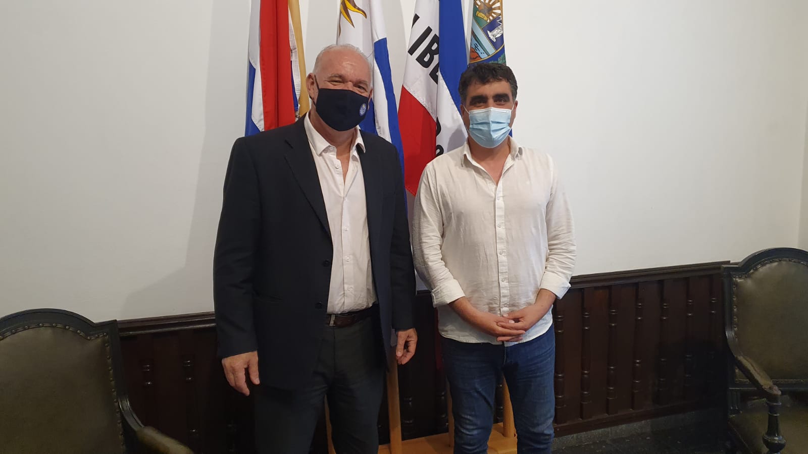 El subsecretario del Ministerio de Industria, Energía y Minería (MIEM), Walter Verri cumplió con una intensa agenda en nuestro departamento y, sobre el mediodía de este viernes, fue recibido por el intendente Andrés Lima, instancia propicia para avanzar en un proyecto considerado de gran importancia para la administración departamental: iniciar el proceso de modernización de la flota urbana de ómnibus con la incorporación de unidades 100% eléctricas “que es hacia donde va el mundo”, dijo el doctor Lima.