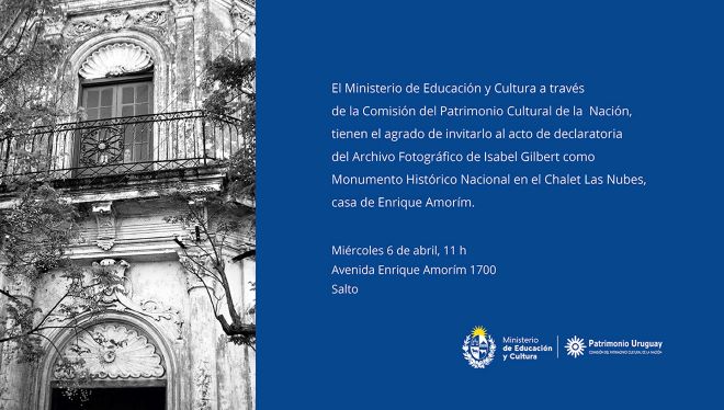 La declaratoria del archivo como Monumento Histórico Nacional será el próximo 6 de abril a la hora 11 en el Chalet Las Nubes, en Salto. Harán uso de la palabra el Emb. Pelayo Díaz, el director de la CPCN William Rey Ashfield y la presidenta de la CPCN, subsecretaria del Ministerio de Educación y Cultura, Ana Ribeiro.