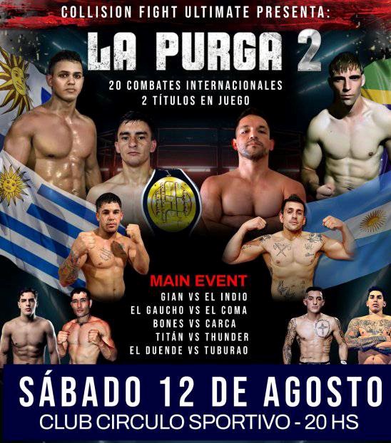 El sábado 12 de agosto retorna La Jaula a Salto y al más alto nivel en Circulo Sportivo. Vuelve el evento de Artes Marciales Mixtas (MMA) Internacional más Importante del Uruguay, en su Edición N° 18, con el nombre LA PURGA 2. Se contará con luchadores de Uruguay, Brasil y Argentina, con combates de primerísimo nivel, con varios títulos en juego.
