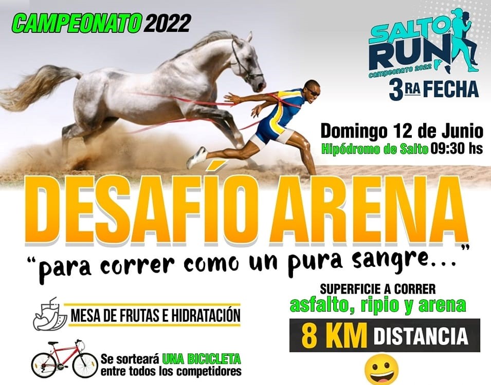 El Campeonato Salto Run 2022 tendrá su tercera fecha denominada Desafío Arena el domingo 12 de junio desde las 9:30 horas.