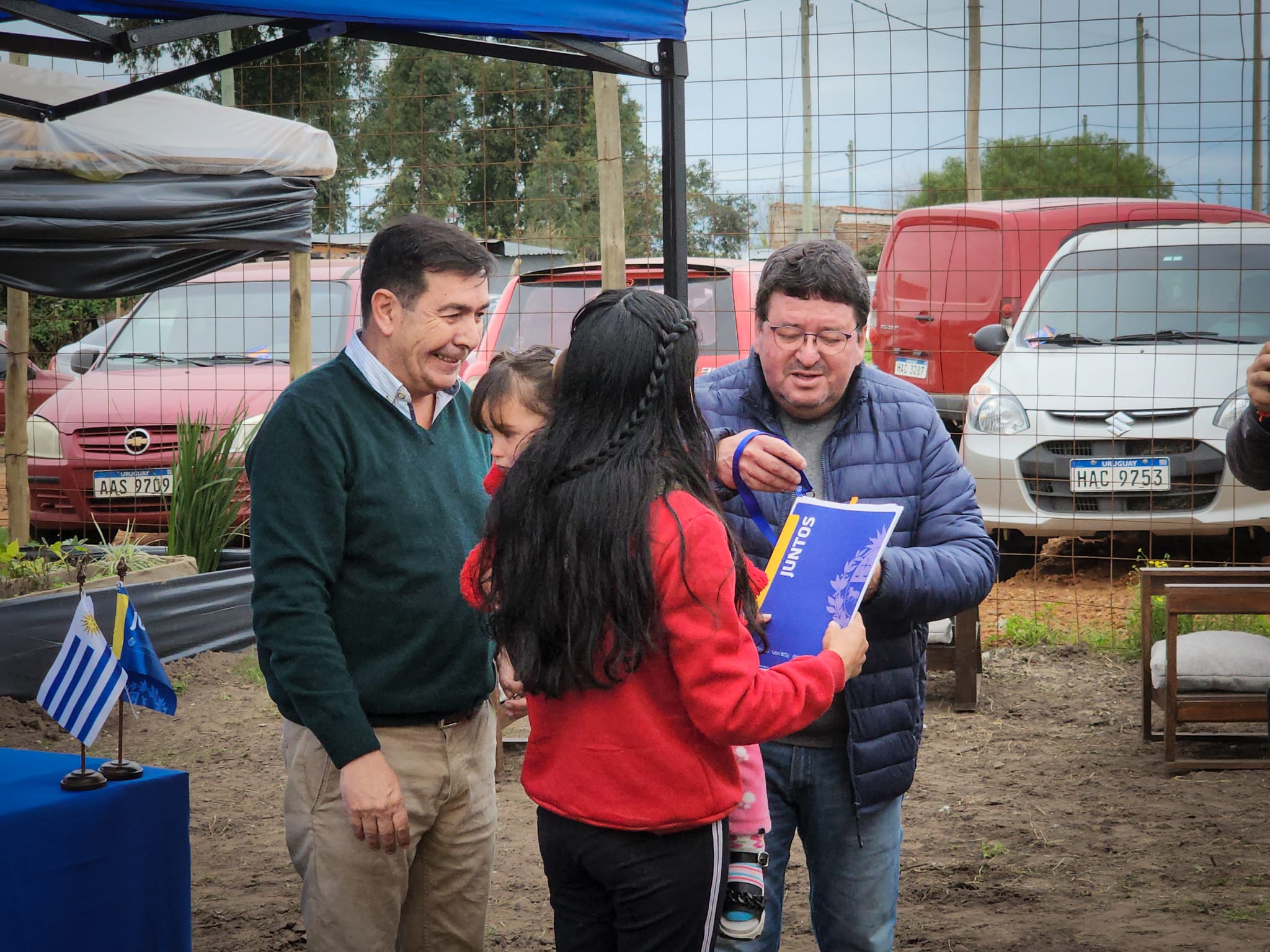 El secretario general de la Intendencia de Salto, Gustavo Chiriff, y la directora de Vivienda y Hábitat, Nelly Rodríguez, acompañaron al ministro de Vivienda y Ordenamiento Territorial, Raúl Lozano, y al coordinador de Juntos, Rody Macías, en la entrega de cuatro soluciones habitacionales en el barrio Andresito.