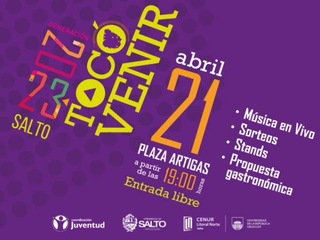 Organizado de forma conjunta la sede Salto de la Universidad de la República y la Oficina de la Juventud de la Intendencia de Salto, la propuesta ofrece un escenario donde se presentarán seis bandas en vivo de diferentes géneros musicales, además mas de 20 expositores, que comprende stands de información y emprendedores, un espacio para las infancias, espacio de gastronomía, junto a sorteos y premios. El evento es abierto a todo público.