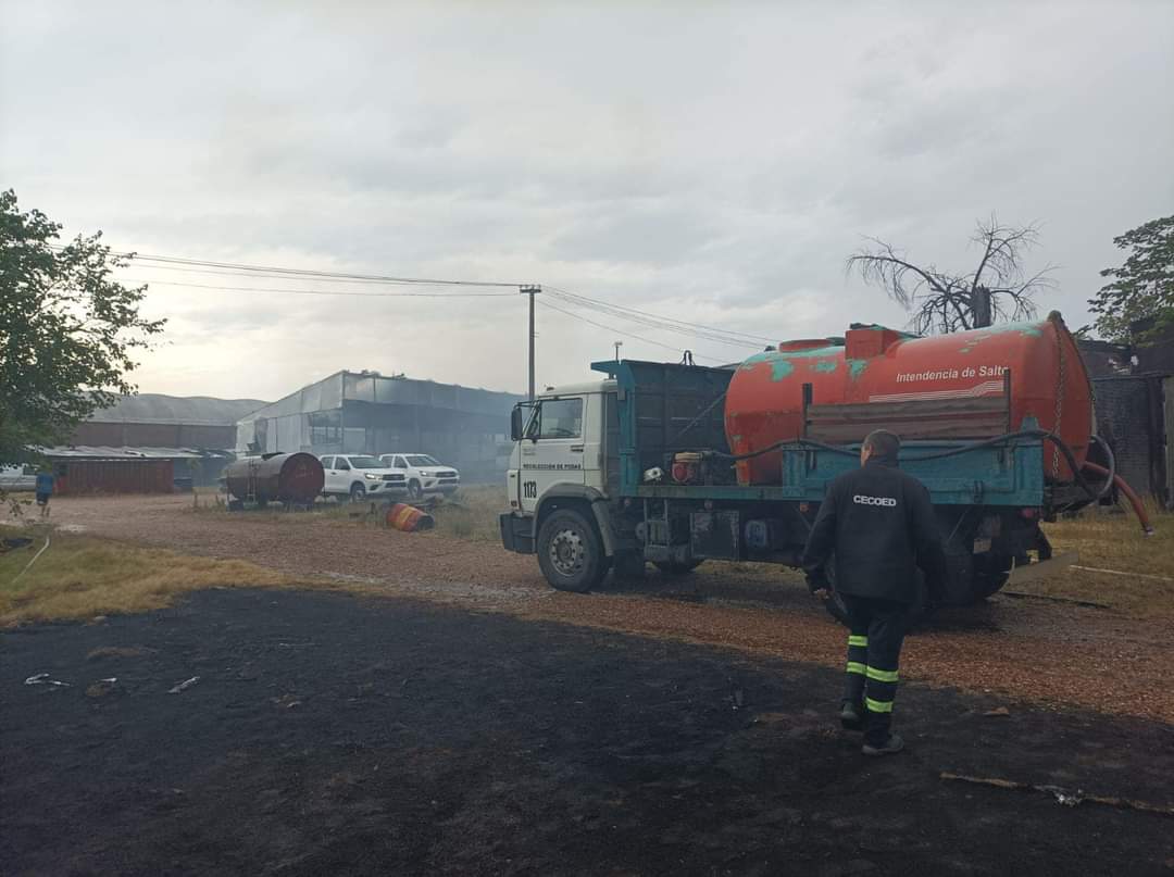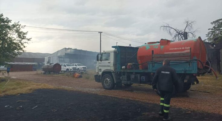 Bomberos y Cecoed trabajaron en incendio registrado este sábado en predio de Citrícola Salteña