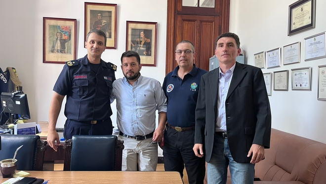 El coordinador del Centro Coordinador de Emergencias Departamentales (CECOED), Josué Lima -junto al funcionario Federico Decker- y el diputado Álvaro Lima, fueron recibidos por el Sub Director Nacional de Bomberos, Crio. Mayor Richard Barboza, a quien le transmitieron la preocupación del inminente traslado del camión cisterna de bomberos desde Salto hacia el Este del país.