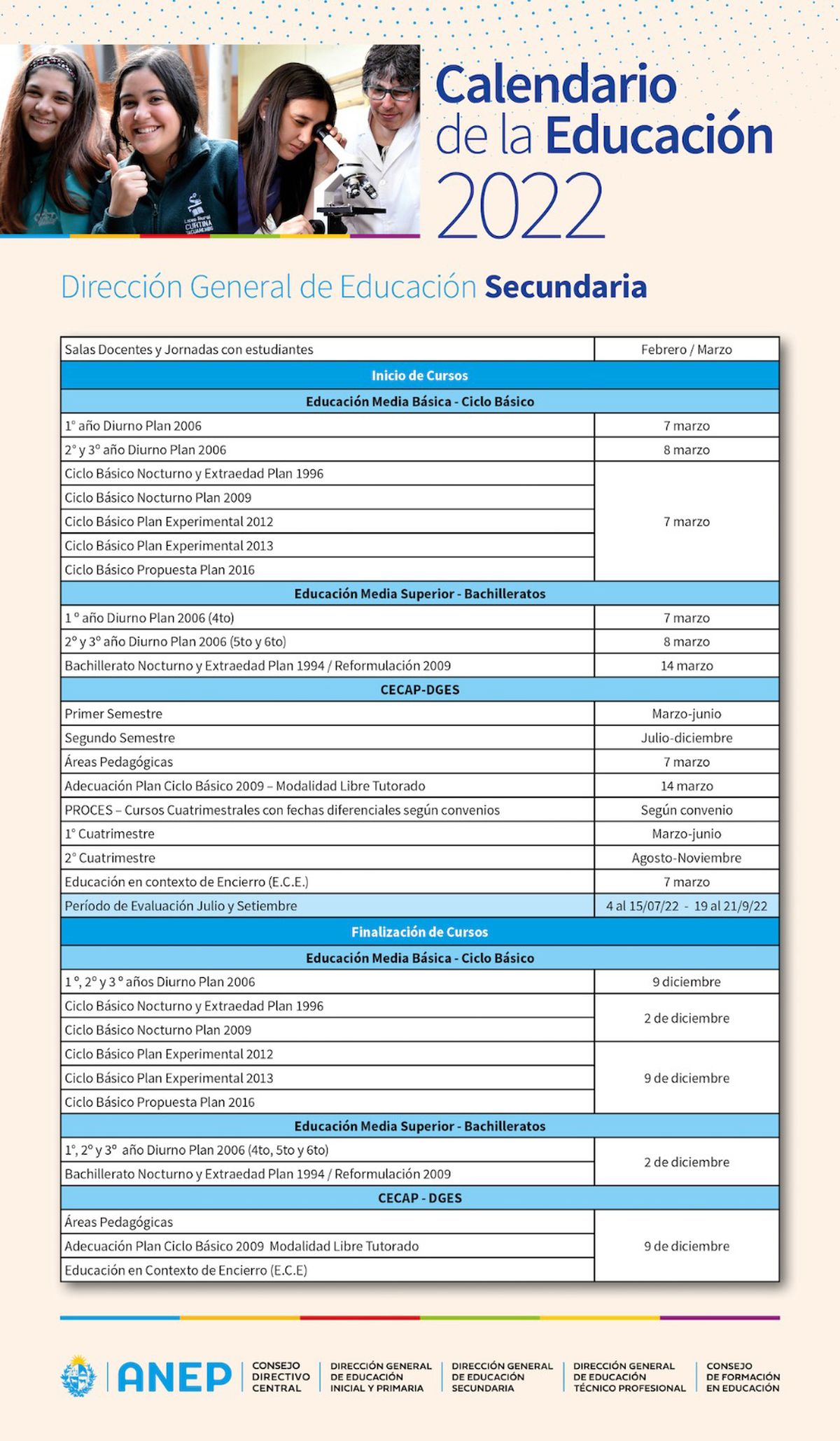 Así lo expresa el cronograma presentado este jueves por el consejo directivo central de la Administración Nacional de Enseñanza Pública (ANEP).