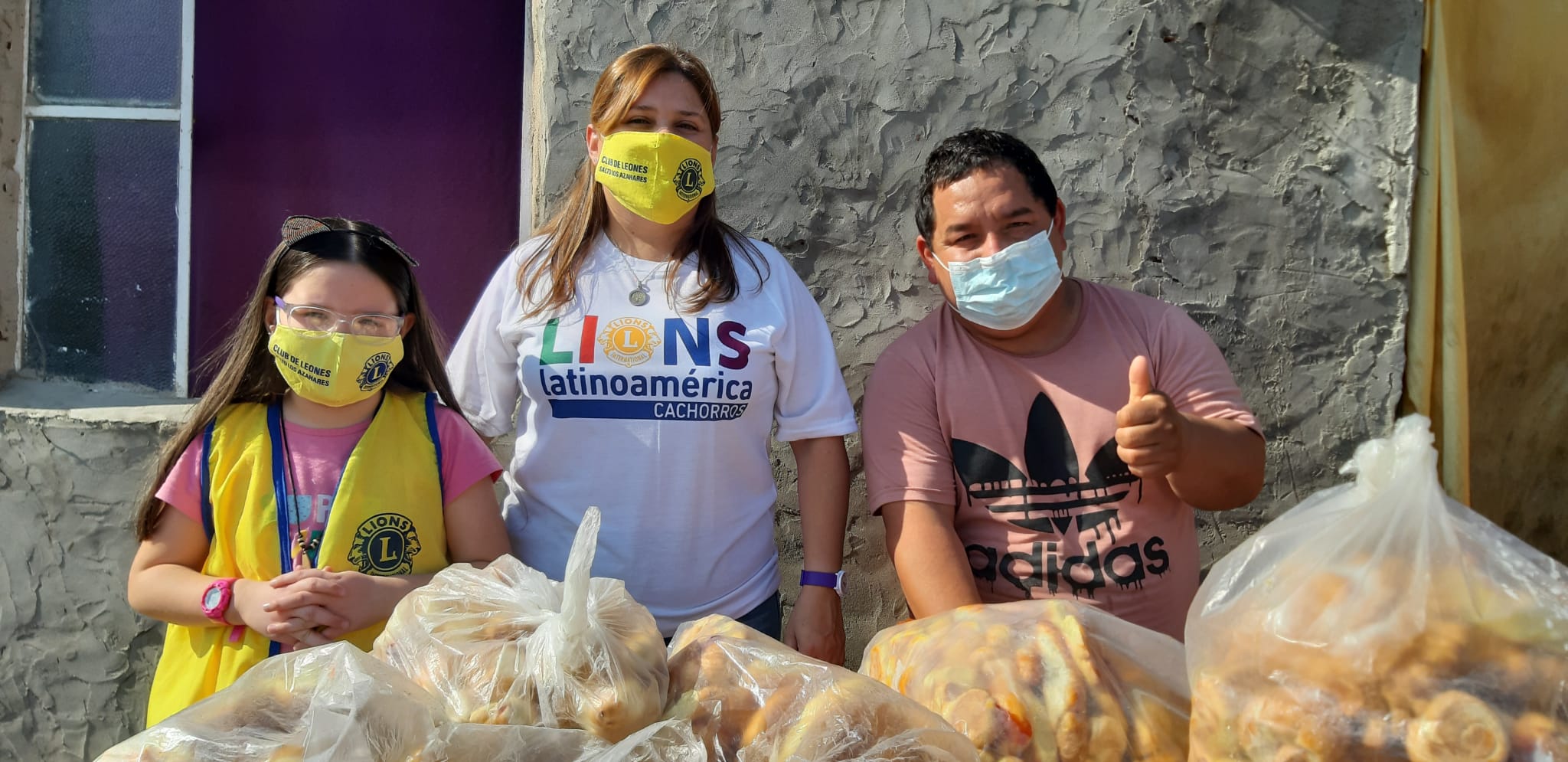 Club de Leones Salto los Azahares y Club de Cachorros entregaron pan y bizcohos a Merendero Los Totitos.