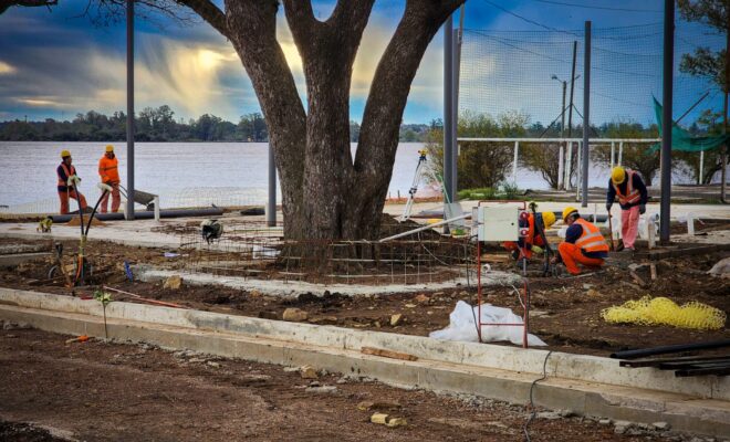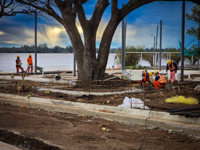 Si bien los plazos previstos se ven afectados por la crecida del río, se están haciendo esfuerzos adicionales para lograr avances significativos y cumplir con el calendario previsto. Todo lo que se construye en este paseo es de hormigón, una inversión diseñada para prevenir el impacto del agua durante las crecidas. Esta planificación cuidadosa y adaptada al terreno y al entorno ambiental de la zona está demostrando su eficacia en medio de esta eventualidad de la naturaleza, destacó el Intendente.