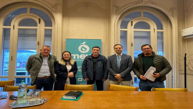 El director del departamento de Descentralización de la Intendencia de Salto, Álvaro Gómez, el alcalde del Municipio de Villa Constitución Carlos Souto y el diputado Álvaro Lima, mantuvieron una reunión este martes con el gerente general de Mevir, arquitecto Pablo Avelino.