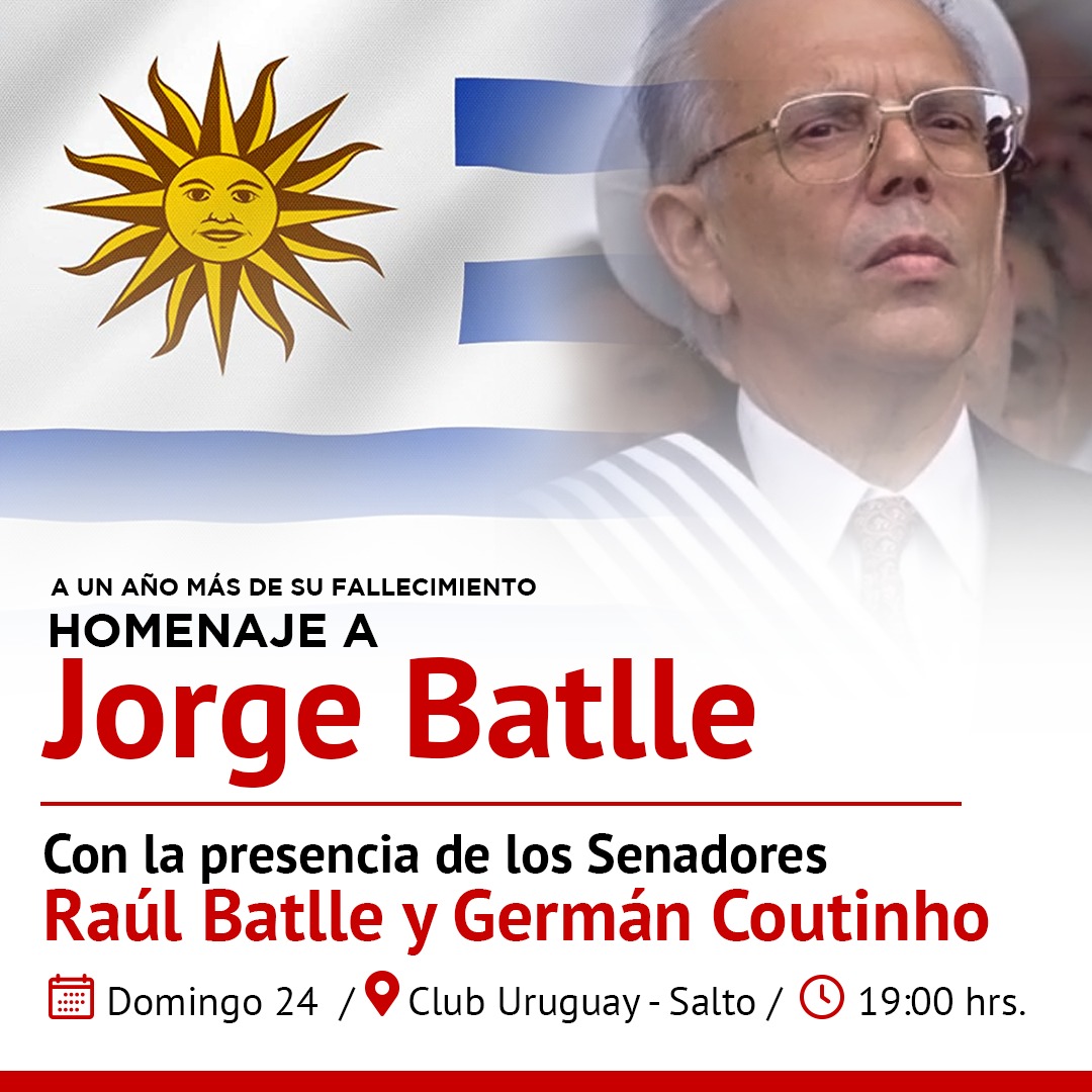 Este domingo los colorados le brindaran un homenaje al ex Presidente Jorge Batlle Ibañez, al cumplirse el quinto aniversario desde su fallecimiento. Se realizará en el Club Uruguay, situado en la céntrica calle Uruguay N° 754, a la hora 19:00 y entre los principales oradores estarán el coordinador de la Bancada del Partido Colorado, el Senador Germán Coutinho; y el hijo del homenajeado, el también Senador Raúl “Mono” Batlle, entre destacadas personalidades que serán parte de la actividad. La misma será abierta a todo el público que quiera participar en la medida que el aforo lo permita, además se deberá concurrir con mascarilla y respetando las recomendaciones sanitarias.