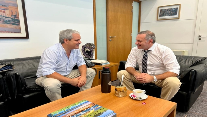 El Edil Carlos Silva, finalizó su recorrida por la capital, con una productiva reunión con el Secretario de Presidencia, Álvaro Delgado con quién, además de hacer un puesta punto de distintos temas que son de importancia para Salto, pusieron arriba de la mesa, los grandes desafíos que se vienen para el 2023. Esta serie de reuniones concluyen con el compromiso del Gobierno Nacional y de distintos organismos con Salto, para el desarrollo de nuestra región.