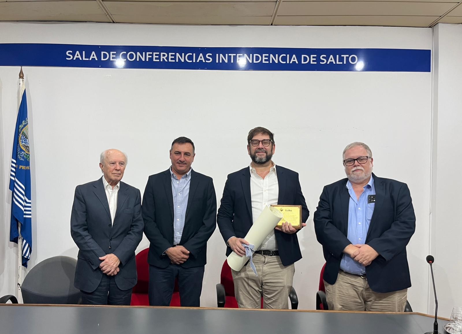 Además del homenajeado y del jefe comunal, participaron del acto el coordinador de Cultura del Gobierno de Salto, Pablo Bonet, y Pelayo Díaz Muguerza, en representación de la Comisión Pro Órgano.