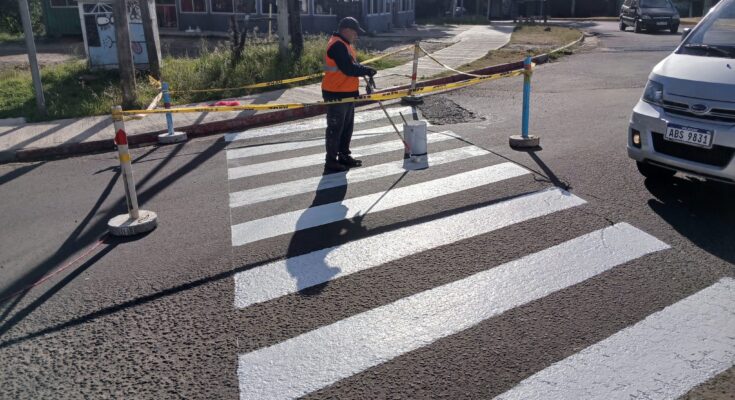 Las tareas incluyen la pintura y reacondicionamiento de sendas peatonales (cebras) y otras marcas viales en áreas de alto tránsito, priorizando aquellos sectores donde la circulación de personas y vehículos es más intensa.