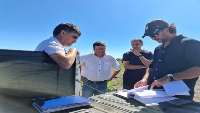 El intendente de Salto, Andrés Lima, y el secretario general, Gustavo Chiriff, recorrieron este miércoles el predio de lo que será el depósito aduanero privado, que estará ubicado en el bypass de ruta 3, próximo a la Gaviota, con el fin de conocer de primera mano los detalles de la obra. También acompañó la recorrida el presidente de la Delegación Uruguaya ante la Comisión Técnica Mixta (CTM) Salto Grande, Carlos Albisu.