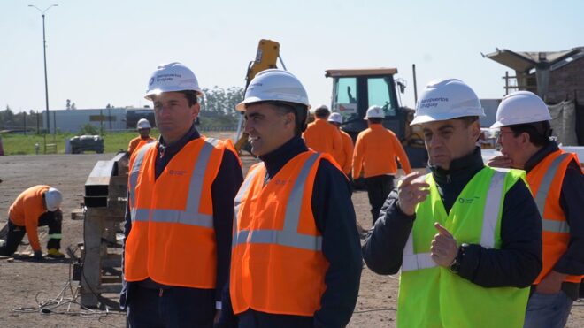 El intendente Andrés Lima acompañó a representantes de Aeropuertos del Uruguay y Corporación América Airports en una recorrida por las obras de modernización que se llevan adelante en el aeropuerto de Salto, con el fin de renovar su infraestructura, adecuar la pista y ampliar la terminal. Se trata de una inversión de 15 millones de dólares que se está volcando en el aeropuerto.