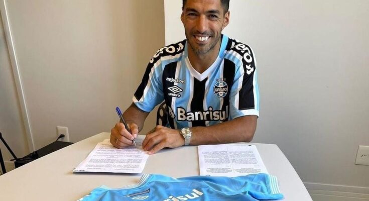 El jugador salteño Luis Suarez jugará en el Gremio de Porto Alegre, la foto de la firma del contrato con el salteño luciendo la casaca celeste y mostrando sobre una mesa la 9 titular que vestirá en la temporada 2023 se hizo viral en el ultimo día del 2022.