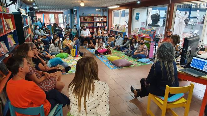 El encuentro fue justamente visitar el rincón dedicado a Primera Infancia, Bebeteca, intercambiar experiencias de animación y mediación de lectura desde edades tempranas, con niños y niñas, pero también, acercando a la familia.