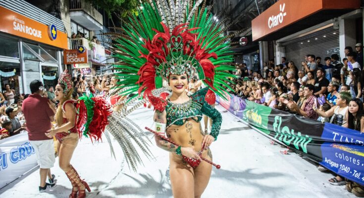 Personal de la Intendencia de Salto trabaja ajustando los detalles para el primer desfile del Carnaval 2024 Ruben Papino Ciocca, que tendrá lugar este sábado 27 de enero a partir de las 21 horas, por calle Uruguay desde plaza Artigas hasta plaza Treinta y Tres.