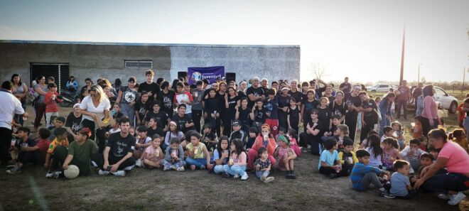 El pasado fin de semana se llevó a cabo una actividad recreativa y deportiva con la participación de más de 300 niños, niñas y adolescentes en la cancha del club El Tanque, en barrio Los Pinos (ex barrio Los Teros), propuesta coordinada entre la Coordinación de Juventud de la Intendencia de Salto y estudiantes de Trabajo Social de la Universidad de la República, con apoyo de Inau.