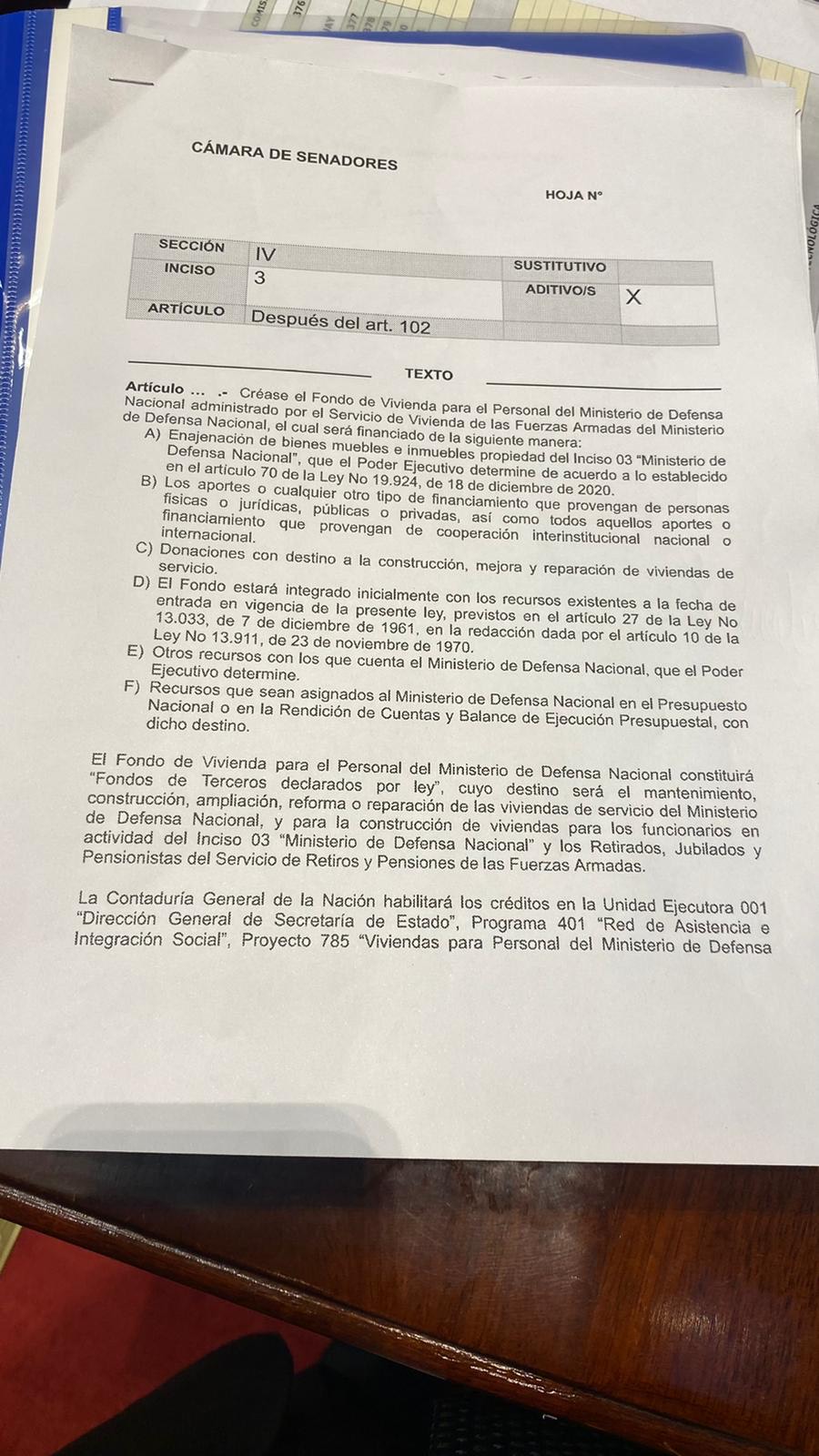 El senador Germán Coutinho trabajó en conjunto con los senadores de la coalición de gobierno y con éxito un artículo muy importante de la Rendición de Cuentas y esperado por la familia militar que fue la creación del Fondo de Vivienda para el Personal del Ministerio de Defensa para la construcción, mantenimiento y ampliación de la vivienda en especial del personal sub alterno de las Fuerzas Armadas. Se fijaron las fuentes de financiamiento del Fondo destinado a la vivienda para los militares con mayores necesidades en la materia, que será administrado por el Servicio de Vivienda de las Fuerzas Armadas del Ministerio de Defensa Nacional.