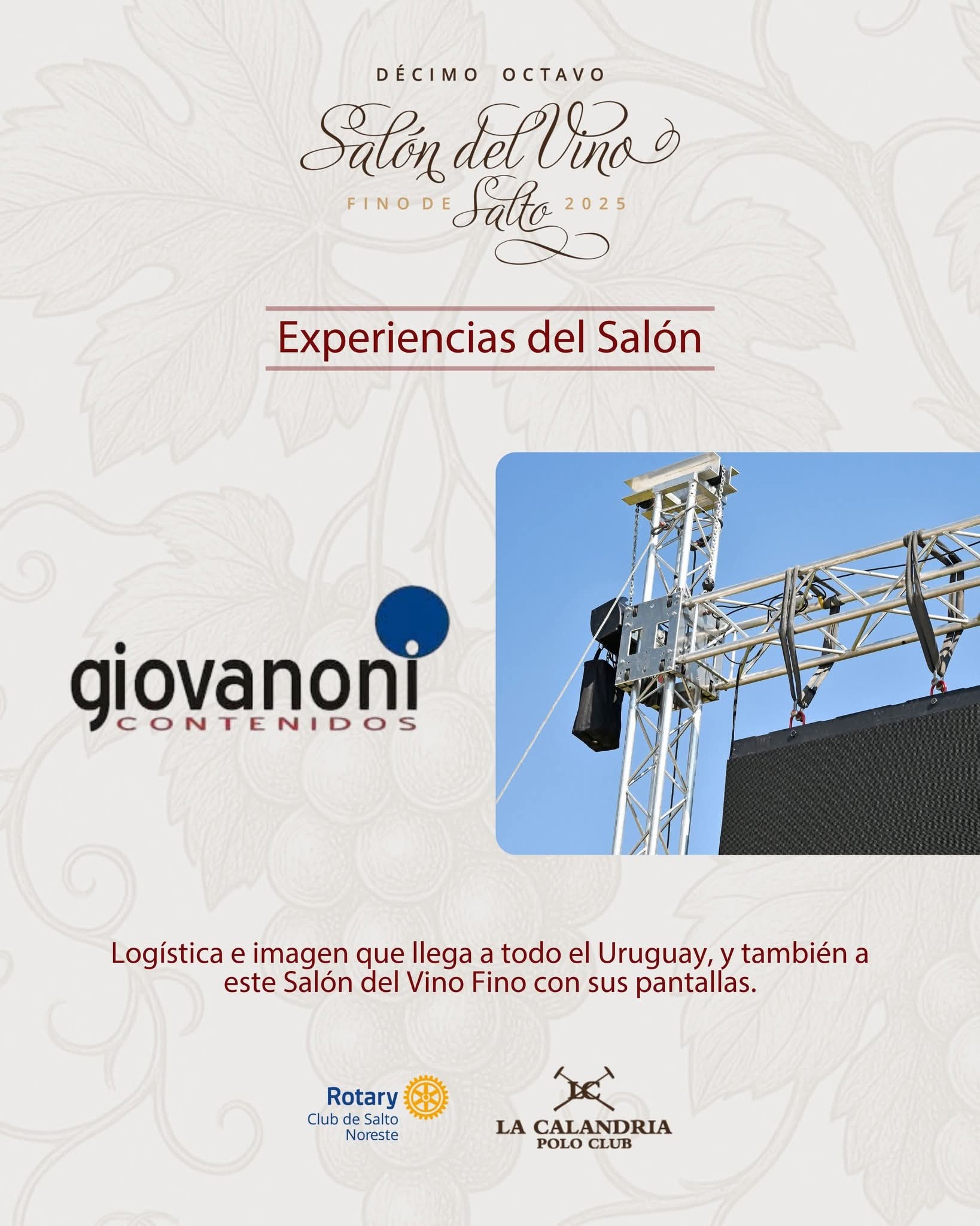Con pantallas de alta definición y una logística impecable, Giovanoni Contenidos estará presente en el Salón del Vino, llevando su imagen a todo el Uruguay y asegurando que cada detalle brille.