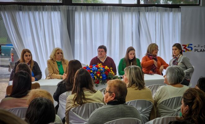 El pasado viernes, en las instalaciones del club Ferro Carril, tuvo lugar el acto de celebración del trigésimo quinto aniversario del plan Caif. Este evento contó con la destacada presencia del presidente de INAU, Pablo Abdala, y la directora departamental, Carolina Meirelles, así como del secretario general de la Intendencia de Salto, Gustavo Chiriff.