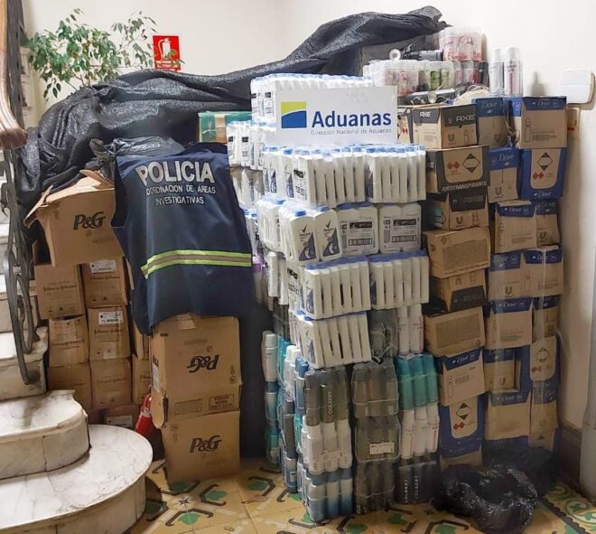 Por información colectada y analizada por personal de Coordinación de Áreas Investigativas donde surge que se intentaría ingresar al País por el Rio Uruguay mercadería de presunta infracción aduanera. De acurdo a esto se precede a realizar observación y vigilancia por diferentes puntos de la zona Sur de la ciudad. Próximo a la hora 01:00 del día de la fecha personal de Unidad de Investigaciones que se encontraba en horas francas divisa un camión de color blanco, marca JAC, carente de chapa matricula, circulando de forma sospechosa. Por lo cual el funcionario policial solicita apoyo, realizando seguimiento a distancia en su vehículo particular, donde en la intersección de Avenida Pascual Harriague y calle Washington Beltrán se logra la identificación del ocupante del camión, mayor de edad. Al realizar la inspección del vehículo se constata que el mismo tendría en la caja, varios bultos con mercadería de procedencia Argentina, siendo esta cigarros Gift 140.000 unidades, desodorante Dove 150 ml 600 unidades, desodorante Rexona clinical 1080 unidades, desodorante Axe 179 unidades, desodorante Colvert 348 unidades, desodorante Rexona Original 72 unidades, desodorante Mujercita 123 ml 102 unidades, desodorante Paco 28 unidades, Aromatizante de Ambiente de 220 ml 84 unidades, talco Pedico de 200 g. 468 unidades, Shampoo de 400 ml 348 unidades, Acondicionador de 400 ml 436 unidades, Shampoo de 10 ml 3456 unidades, maquina de afeitar 1752 unidades. Se informó del hecho a Fiscalía quien dispuso: detención del masculino y acta por art 61 CPP y se lo vuelva a enterar, hora 13:00 de la fecha condición del mismo a fiscalía, Documentación por parte de Policía Científica, incautación de la mercadería, camión y pase a Dirección Nacional de Aduanas. Una vez realizado dispuesto por Fiscal de Turno la Dirección Nacional de Aduanas avaluá dicha mercadería en la suma $U 2.953.56 (Dos millones novecientos cincuenta y tres mil quinientos sesenta pesos Uruguayos).
