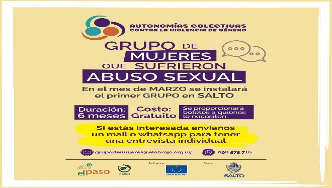 La Coordinación de Género y Generaciones de la Intendencia de Salto informa que el próximo mes de marzo se instalará el primer grupo de apoyo a mujeres que sufrieron abuso sexual.