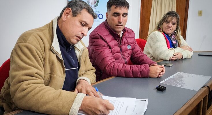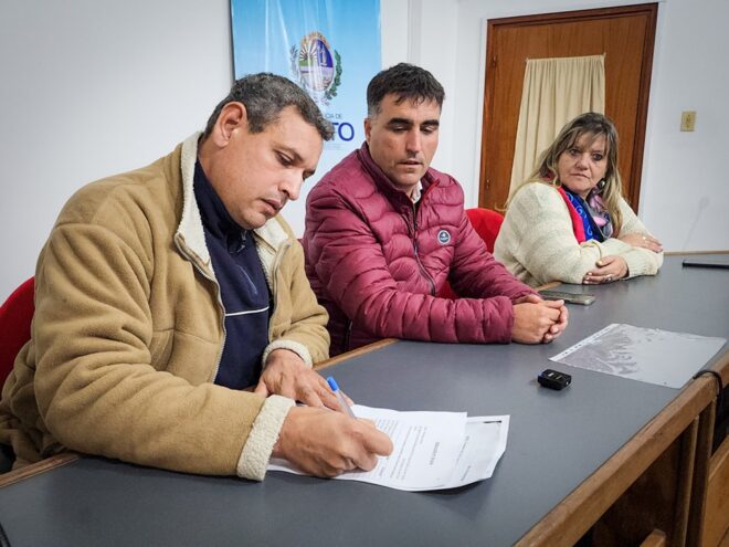 El intendente Andrés Lima y la directora de Vivienda y Hábitat, Nelly Rodríguez, entregaron un terreno a la cooperativa «Ubunt Salto», la cual está compuesta por 32 familias.