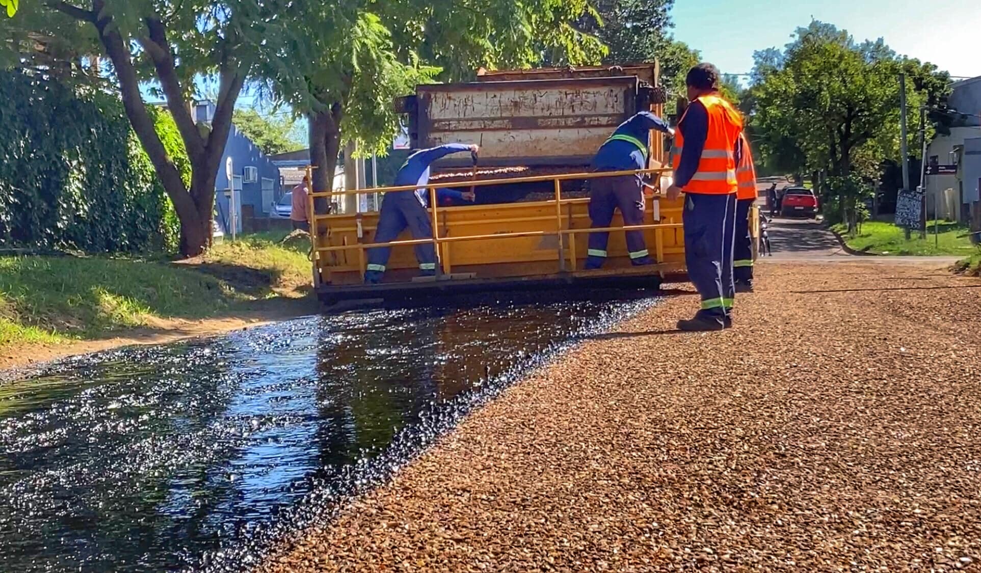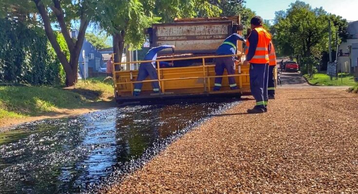 El pasado sábado, se trabajó en la colocación de riego bituminoso en las calles del barrio El Triángulo.