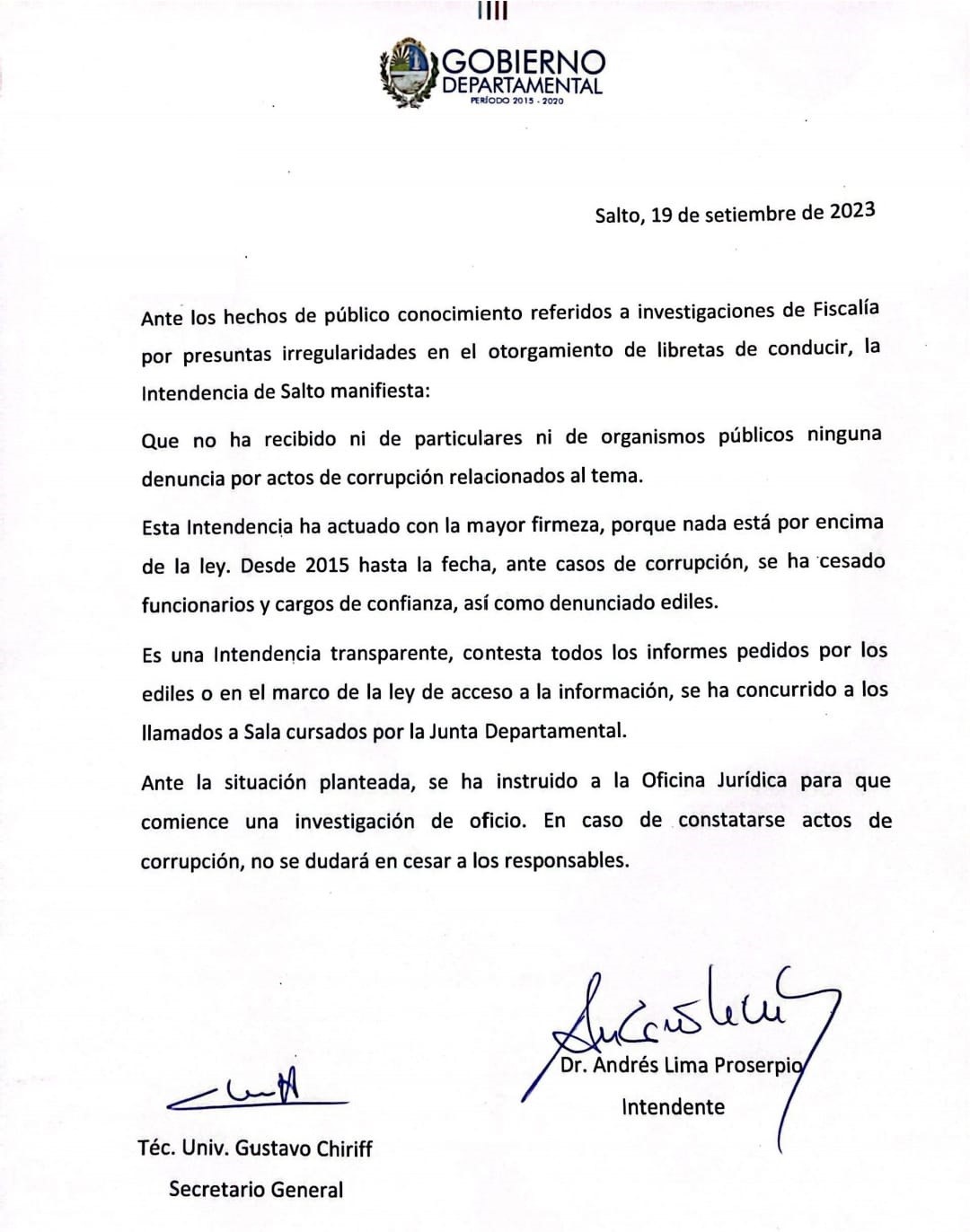 Intendencia de Salto responde a investigaciones por irregularidades en licencias de conducir 19 septiembre, 2023 - Dejar un comentario