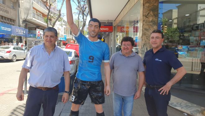 El secretario general de la Intendencia de Salto, Gustavo Chiriff, acompañó la colocación de la estatua de Luis Suárez en su ya clásica esquina de calle Uruguay, restaurada por su escultor Alberto Saravia tras ser dañada en el pasado mes de septiembre.
