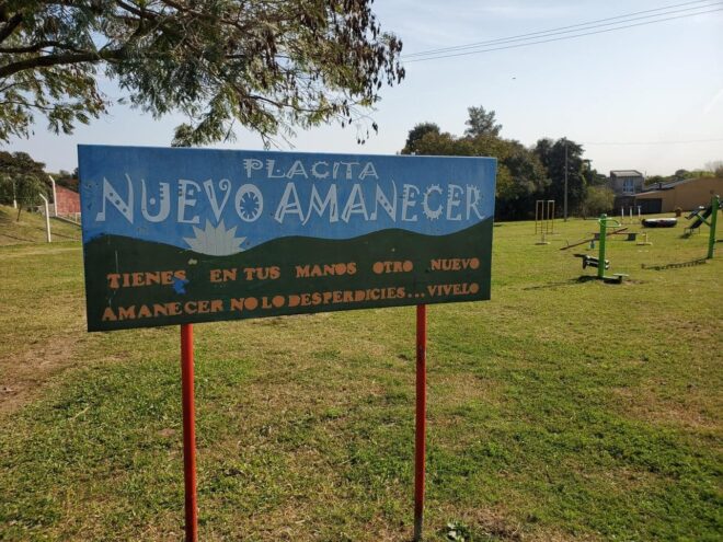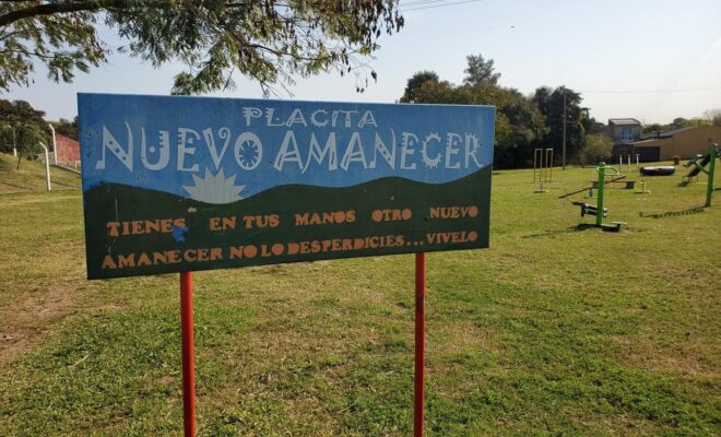 En la Placita Nuevo Amanecer, los residentes del barrio y los visitantes se encontrarán con un cartel que lleva el nombre del espacio y una inspiradora frase: «Tienes en tus manos otro nuevo amanecer, no lo desperdicies… vívelo». Esta expresión refleja la importancia de cuidar y disfrutar de este espacio comunitario, recordando la idea de un nuevo comienzo que representa para la comunidad.