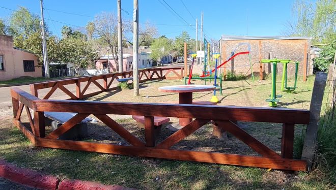 La Dirección de Servicios Públicos de la Intendencia de Salto realizó una serie de mejoras y tareas de mantenimiento en la placita de barrio “La Cachimba” – La Estrella, en la esquina de Cervantes y Lavalleja. La intervención incluyó nueva mano de pintura en los juegos, mantenimiento de todo el espacio, mejoras en el entorno, más iluminación y una empalizada que delimita el espacio público construido por la comuna en el año 2017, durante la primera administración del doctor Andrés Lima. En esa ocasión, funcionarios de la comuna instalaron toboganes, subibaja y otros juegos infantiles para el disfrute de los más pequeños. Ahora fueron incorporadas hamacas, juegos saludables, bancos y mesas, además de la empalizada y la iluminación.