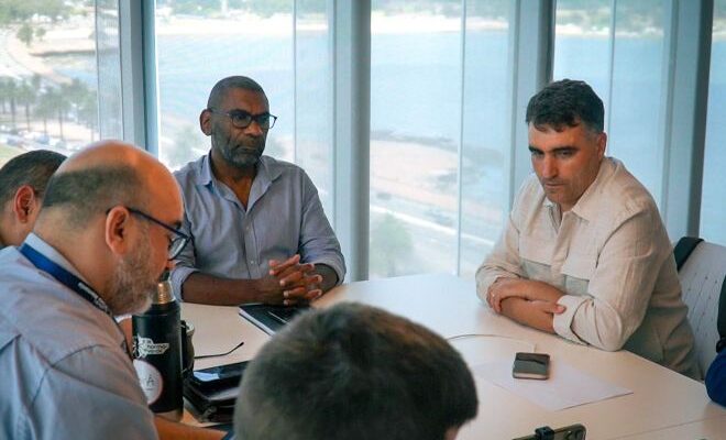Tal como se había anunciado, el intendente de Salto, Dr. Andrés Lima, mantuvo este jueves una reunión en Montevideo con las futuras autoridades del Ministerio de Ambiente, entre ellas el ministro designado, Edgardo Ortuño; el próximo subsecretario, Leonardo Herou; y el Ing. Alejandro Nario, quien ocupará la Dirección de DINACEA (ex DINAMA, organismo que también dirigió anteriormente). A su vez, vía Zoom, participaron desde Salto integrantes del Ejecutivo Departamental, entre ellos el secretario general, Gustavo Chiriff, y el coordinador general, Dr. Juan Pablo Cesio.