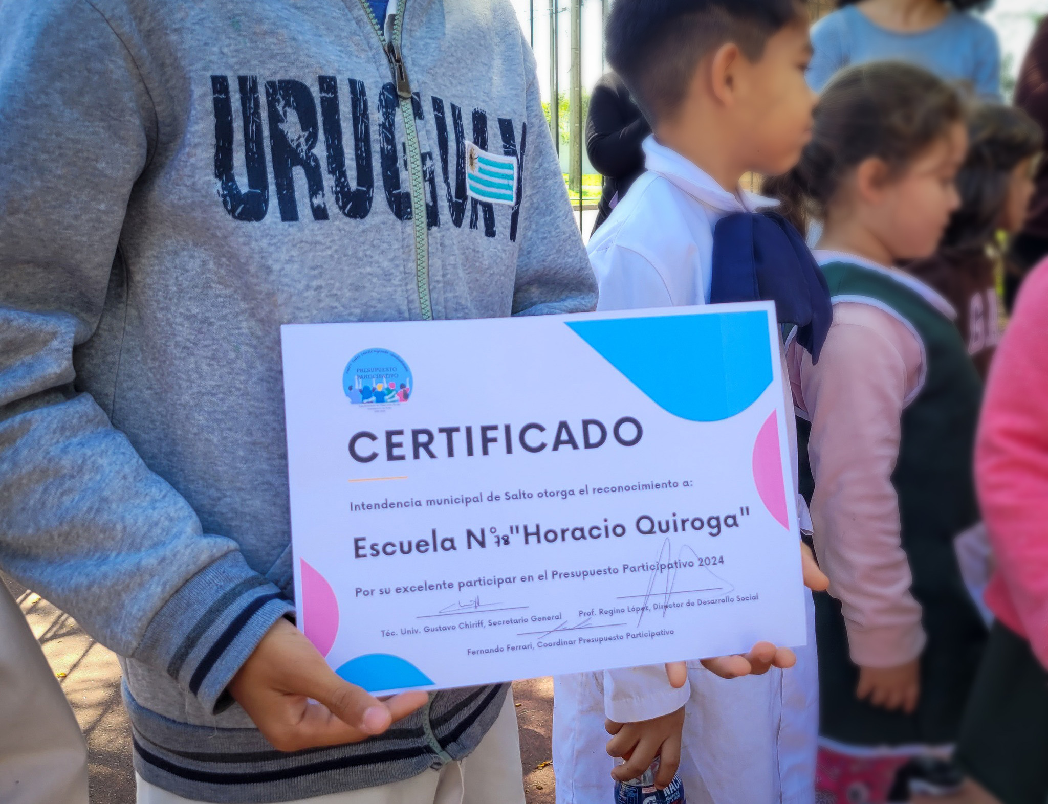 En actos realizados el pasado 2 de octubre se hizo entrega del primer y segundo premio del Presupuesto Participativo a las escuelas Nº81 y Nº78, cuyas propuestas resultaron ser las más votadas en la última edición de este programa de la Intendencia de Salto que brinda a las organizaciones sociales la oportunidad de proponer y concretar obras o proyectos.