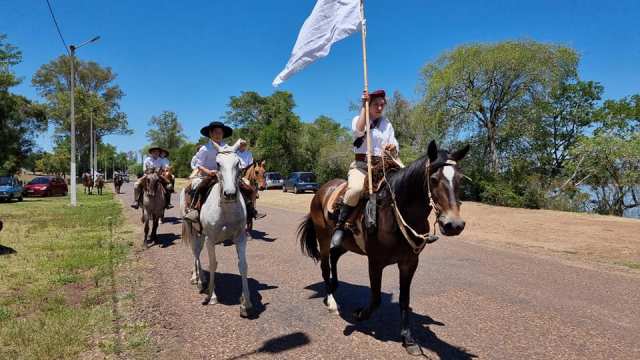 Culminado el acto, los integrantes de las aparcerías bajaron por calle Uruguay hasta la costanera y desde allí hasta el monumento “Eran miles” en la desembocadura del arroyo San Antonio, donde se realizó el izado de pabellones de ambos países. Finalmente, los presentes recorrieron el emblemático monumento.