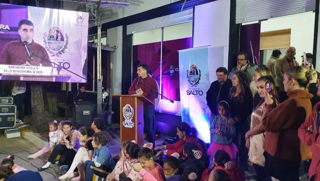 En la noche del viernes, con la presencia del intendente de Salto Andrés Lima, el diputado Álvaro Lima, el secretario general de la Comuna Gustavo Chiriff, el director de Desarrollo Social Regino López y el coordinador de Cultura Pablo Ferreira Pinto, se procedió a inaugurar la nueva sede de la Escuela Departamental de Ballet, en calle Artigas 781. Esta escuela fue creada en 2021 y cuenta actualmente con 300 alumnas y alumnos.