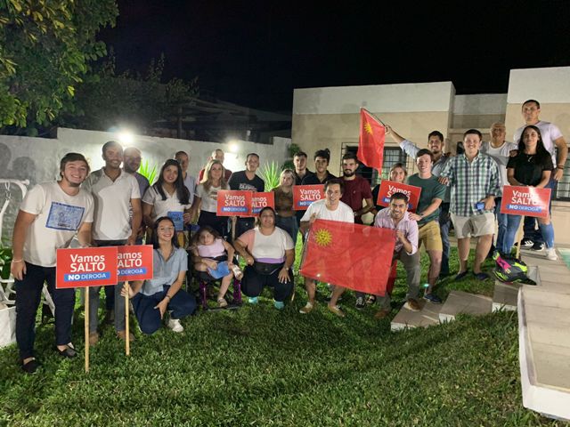 Ambrosoni viene trabajando con otros jóvenes dirigentes, manteniendo reuniones en diferentes barrios de Salto, en defensa de la LUC y a la NO derogación en el referéndum del 27 de marzo.