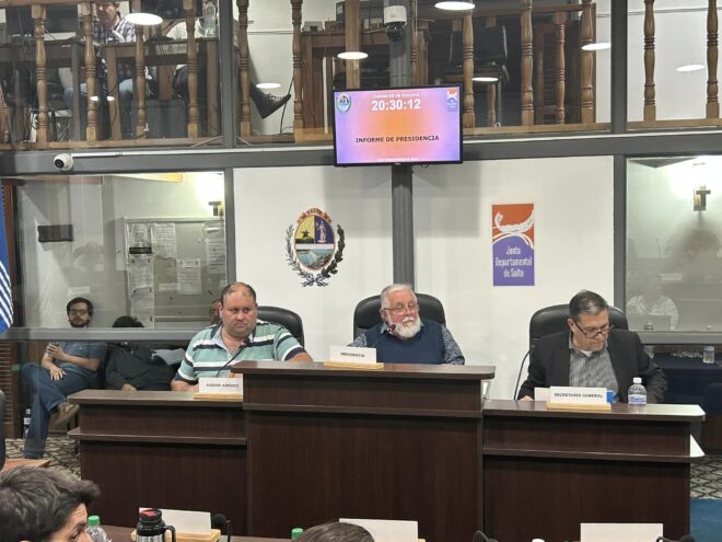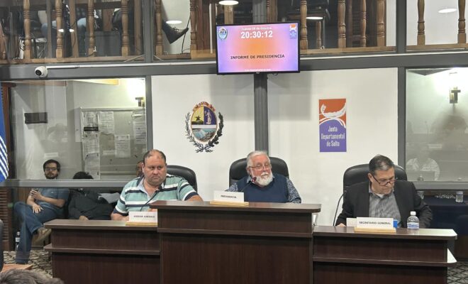 Anoche sesionó en forma ordinaria la Junta Departamental de Salto, la que tras la media hora previa y antes de escuchar el informe de Presidencia, fueron tratados como asunto de preferencia la solicitud de renuncia al cargo de Edil de Juan Ignacio Hourcade, Julio César Acuña, José Luis Ambrosoni, Martín Chiappa Díaz y Daniel Lewis.