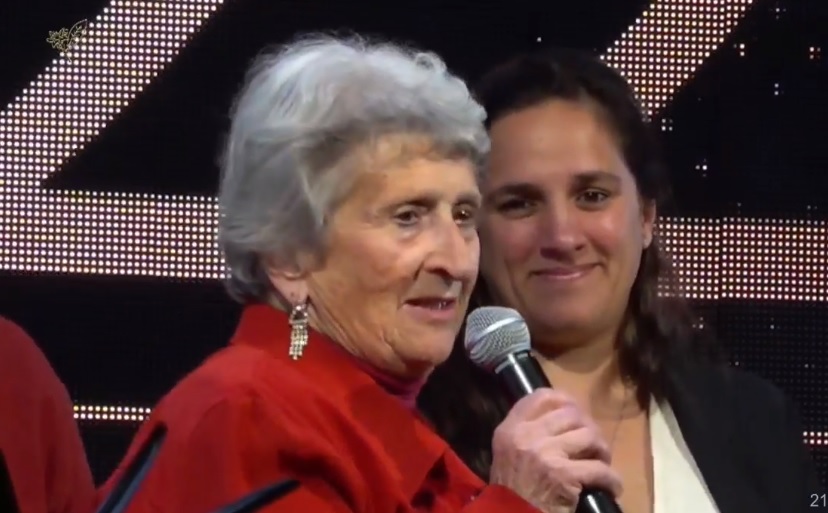 La escribana Macarena Bisio, en representación de Giovanoni Contenidos, entregó reconocimiento a Ramona Vianesi, Bibí.