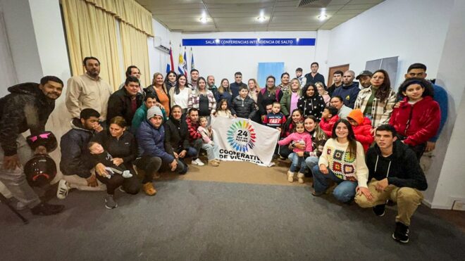 El intendente Andrés Lima y la directora de Vivienda y Hábitat de la Intendencia de Salto, Nelly Rodríguez, hicieron una nueva entrega de terreno, en este caso a la cooperativa de vivienda «Juntos 24 por un futuro». De esta manera, un nuevo grupo de familias accede al comodato para iniciar el proceso de construcción, en lo que será un barrio de viviendas consolidado a partir del sistema cooperativo, en la ex Chacra Municipal. Allí, la Intendencia se encargará de los servicios y de la construcción del saneamiento.