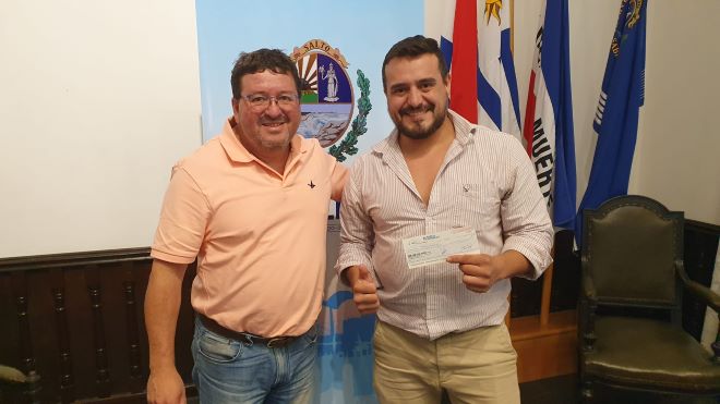 El secretario general de la comuna, técnico universitario Gustavo Chiriff, entregó el cheque a los representantes de las agrupaciones.