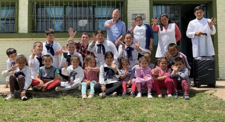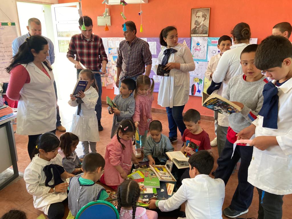 La bibliografía móvil fue recibida por niños y niñas de la escuela y por el equipo docente a cargo de la maestra Julia Muñoz con gran emoción.