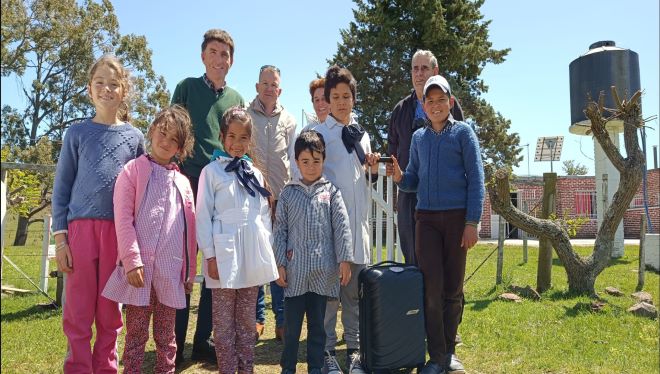 El director del departamento de Descentralización de la Intendencia de Salto, Álvaro Gómez y el diputado Álvaro Lima, estuvieron presentes en Pepe Núñez para confirmar el apoyo al programa educativo y de estímulo de los hábitos de lectura para escolares, denominado Valija Viajera, que fue trasladada a la Escuela 38 de la localidad de Paso de las Piedras de Arerunguá.