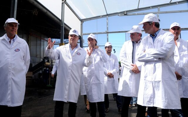 La segunda actividad que desarrolló el presidente de la República, Luis Lacalle Pou, en Salto fue recorrer y dialogar con directivos y funcionarios del sector de empaquetado de la empresa Naranjales Guarino Hermanos. En esta oportunidad, el mandatario estuvo acompañado por el secretario de Presidencia, Álvaro Delgado, y el intendente de Salto, Andrés Lima.