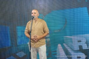 Juan Vicente Román, ofició de maestro de ceremonias para una gran noche que comenzó a toda lonja de tambor junto a Xangó Candombe con la dirección de Yamandú Carballo.