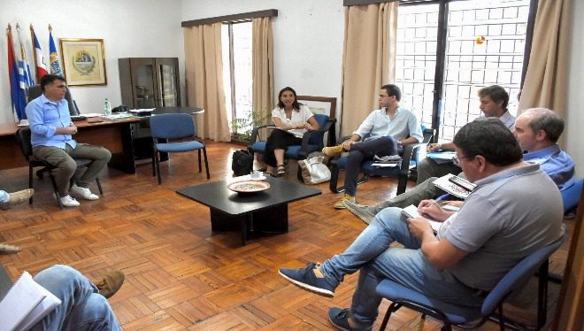 El intendente de Salto, Andrés Lima, acompañado por el secretario general, Gustavo Chiriff, y la directora de Vivienda y Hábitat, Nelly Rodríguez, recibió este martes a una delegación encabezada por la arquitecta Florencia Arbeleche, Directora Nacional de Integración Social y Urbana del Ministerio de Vivienda y Ordenamiento Territorial (MVOT), con el propósito de definir las próximas acciones del plan Avanzar, destinado al realojo de familias que viven en asentamientos. Concurrieron también los arquitectos Álvaro Sánchez, Alejandro Bonicelli y Federico Villar, del equipo de Gestión y Articulación, y el licenciado Felipe Sottovia, de la Unidad de Proyectos y Obras.